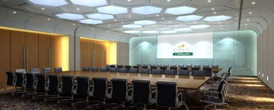 The meeting room has elegant environment and multifunctional equipments. It can accommodate 100 people, set tables according to guests’ requirements. It is absolutely the ideal choice for you to organize small and middle business meetings.